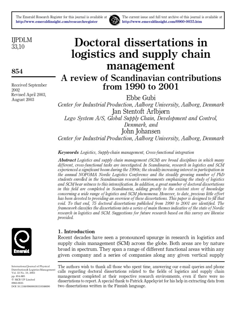 The field of operations management is vast and interrelated to so many other academic disciplines like civil engineeringconstructionlawand even healthcare. That is why it is imperative to create dissertation proposal on supply chain management operations management dissertation topic that is articular, sound, and actually solves a practical problem that may be rampant in the field. There are several significant downfalls to getting your topic wrong; your supervisor may not be interested in working on it, the topic has no academic creditability, the research may not make logical sense, there is a possibility that the study is not viable.