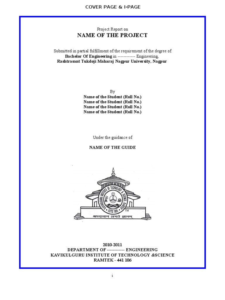 The following subsections provide information regarding what is expected in each case. The title page can either be custom or follow the template supplied by your university. However, a standard title page should have the approved university logo, the title of the project, the full names of all contributors i.